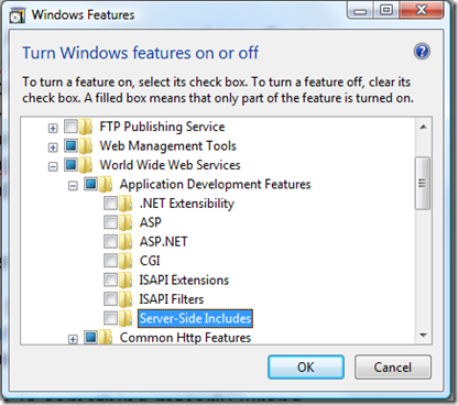 Now I am wondering, if IIS doesn't understand .aspx, there is something majorly wrong. First thing I do is go to control panel -> Uninstall a program -> Turn Windows Features on and off. I open the Internet Information Server branch -> World Wide Web Service Branch -> Application Development Features, this is what I see...
